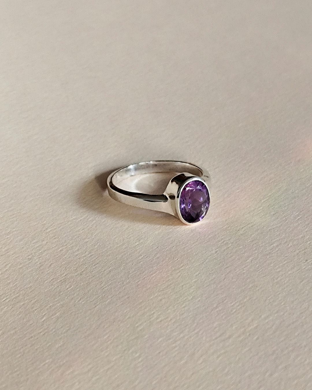 Anillo en Plata 925, con piedra amatista legítima facetada.