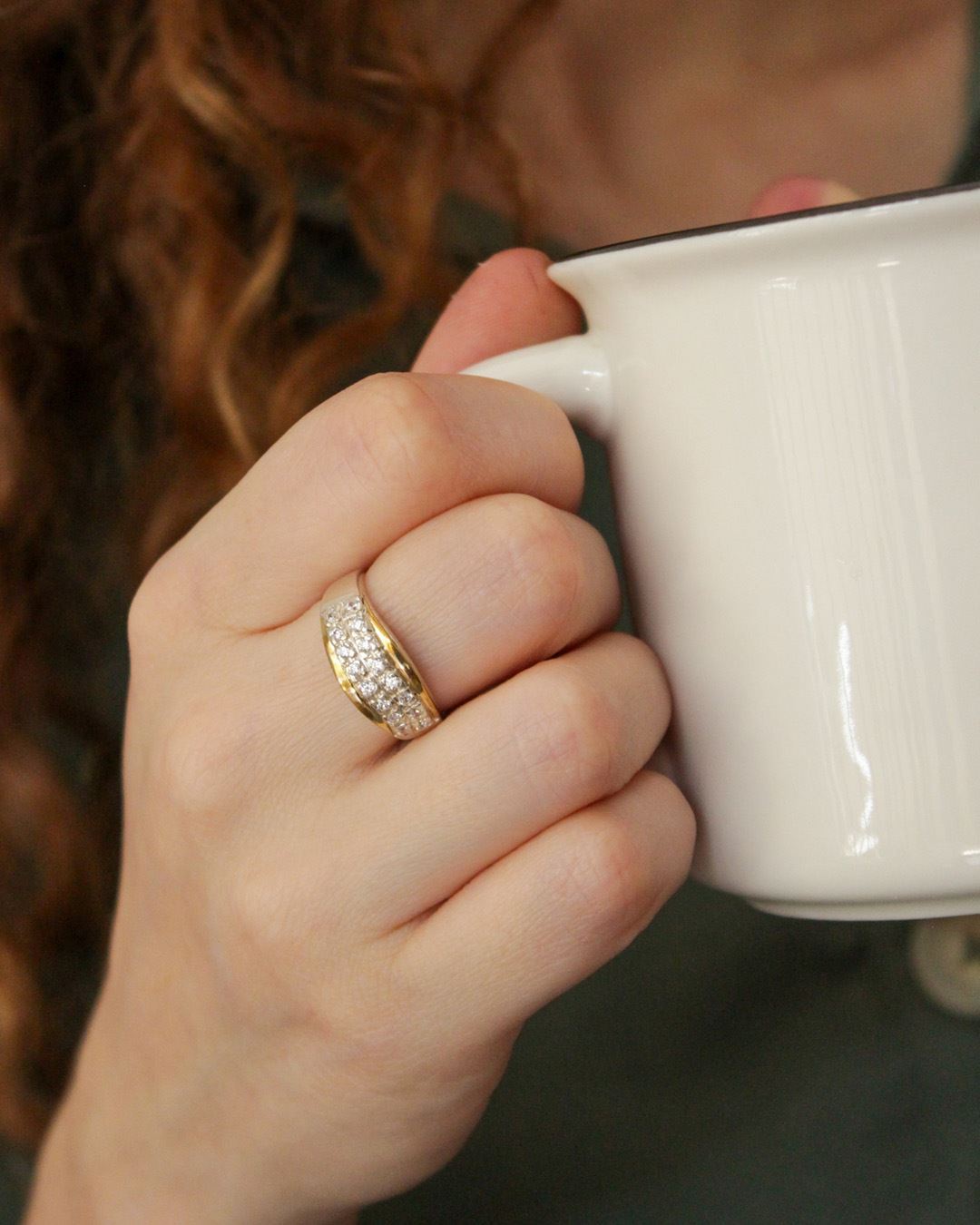 Anillo en plata y oro con doble hilera de zirconias.
