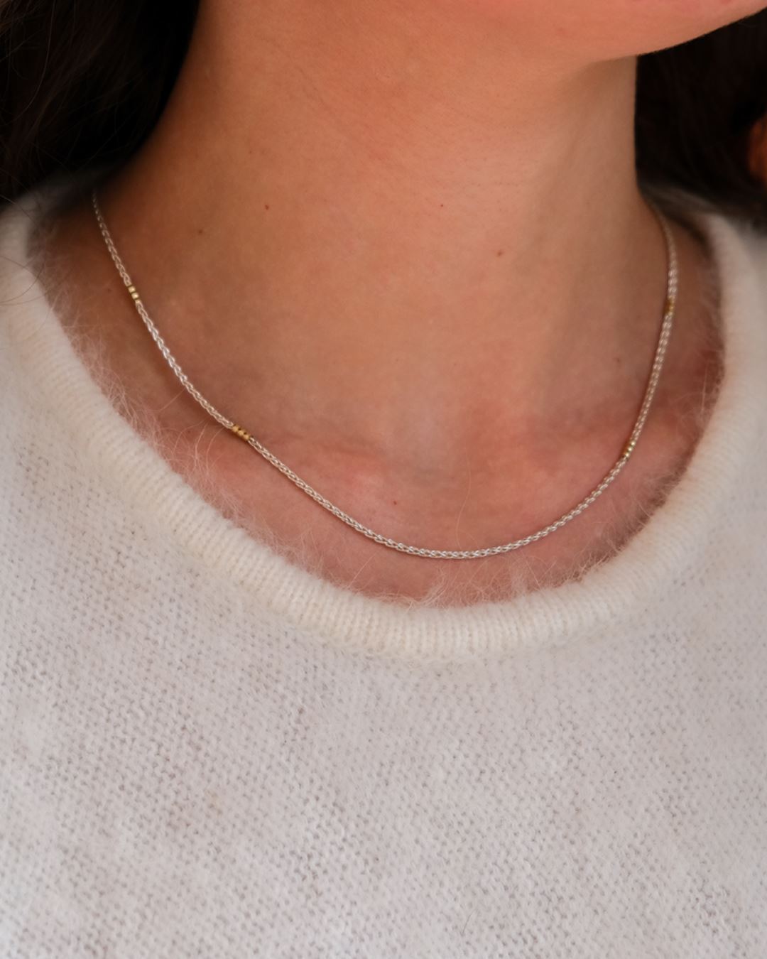 Cadena en plata y oro de 50cm, tipo espiga en plata 925 y doublé.