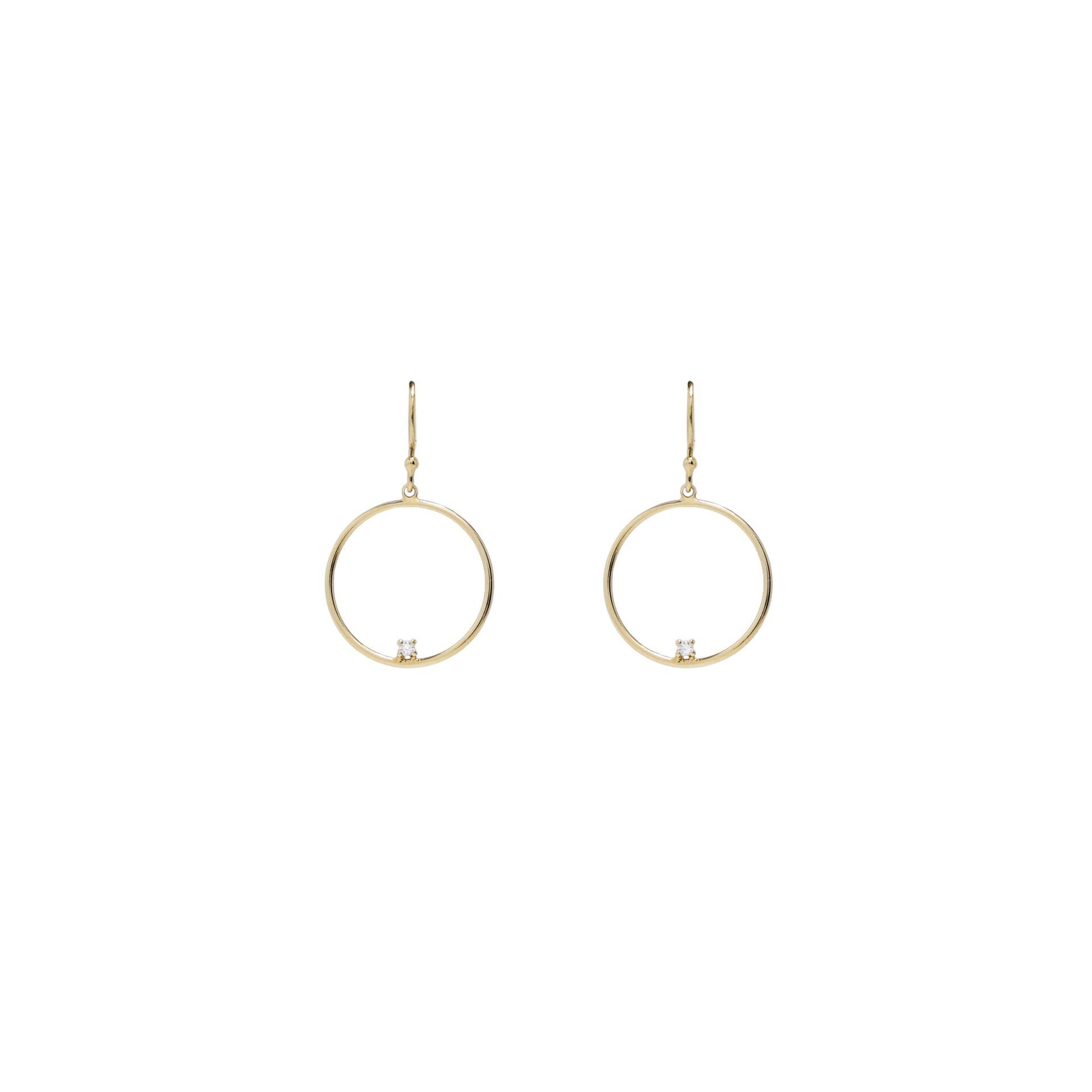 Caravanas colgante aro en oro 9k y una zirconia. Medida: 17mm diámetro