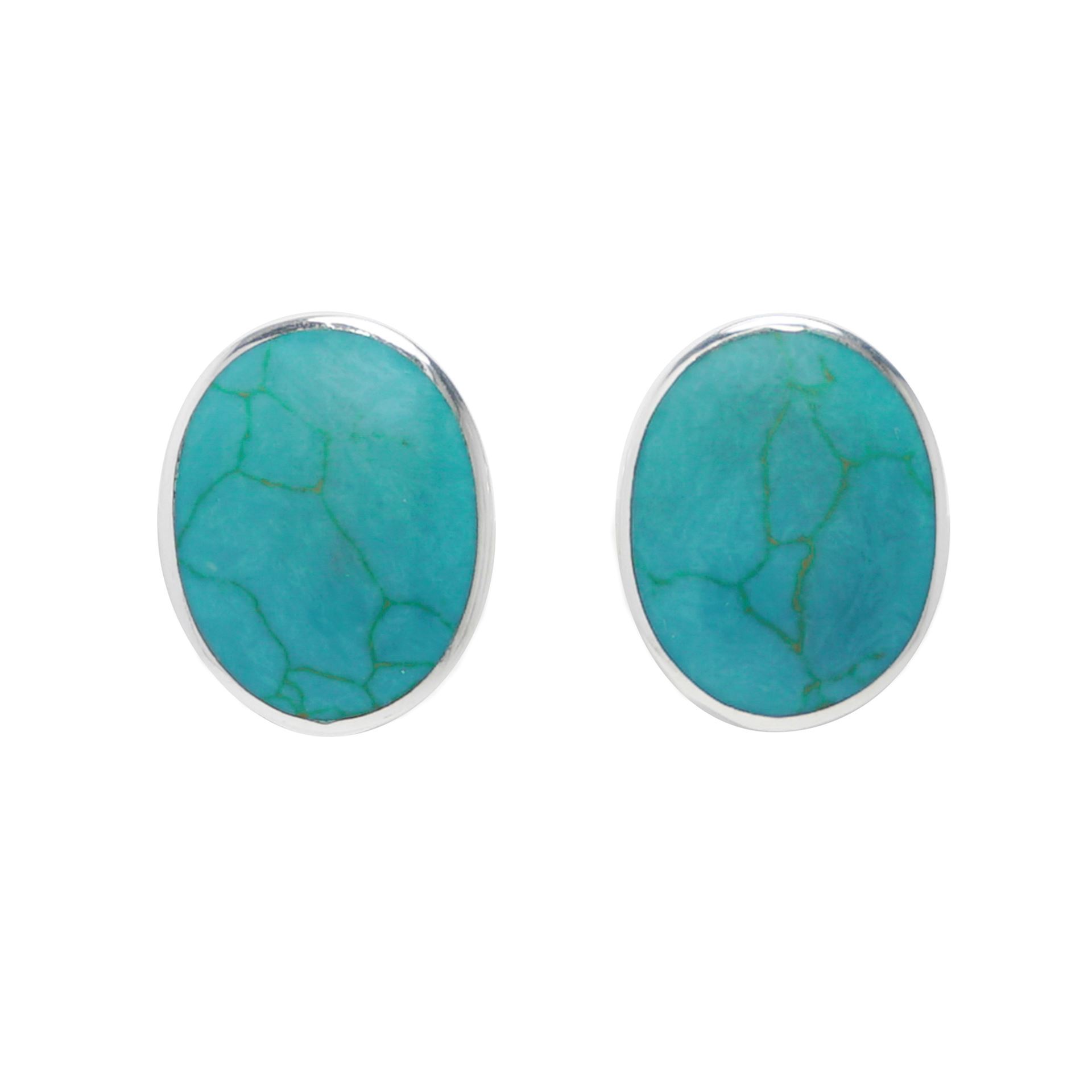Caravanas Plata 925 oval Turquesa con cierre clip