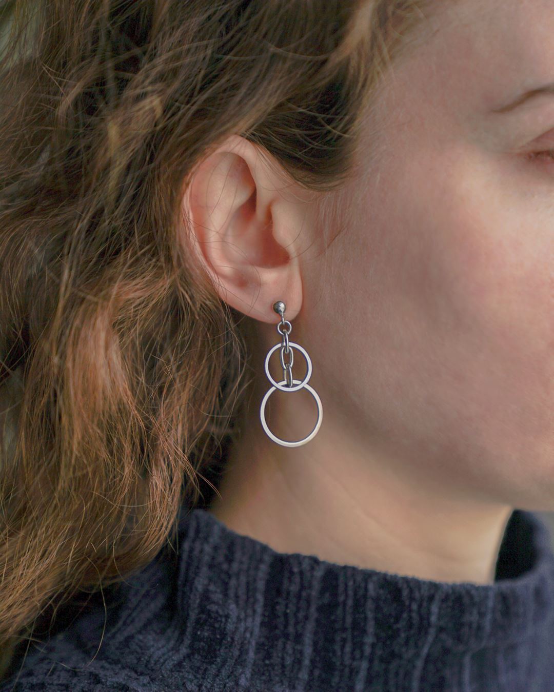 Caravanas colgantes en Plata 925 con aros y cadena.