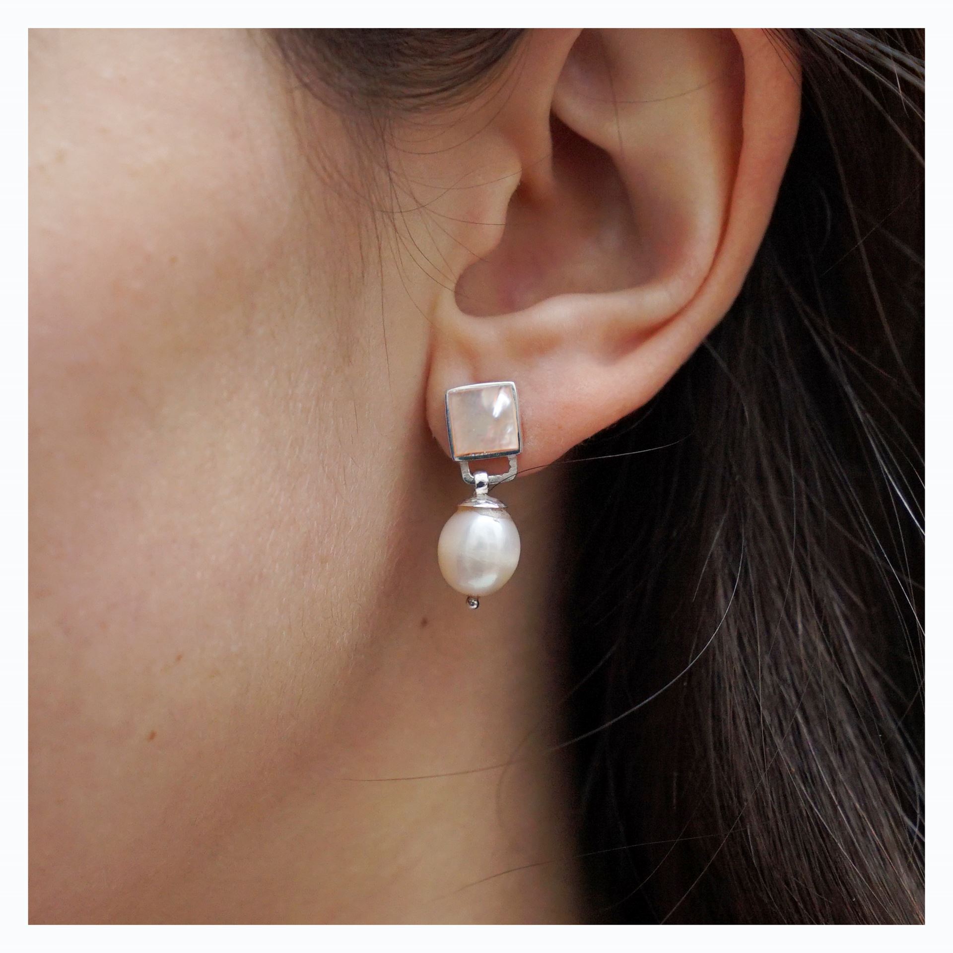 Caravanas en Plata 925, Nácar blanco y Madre Perla