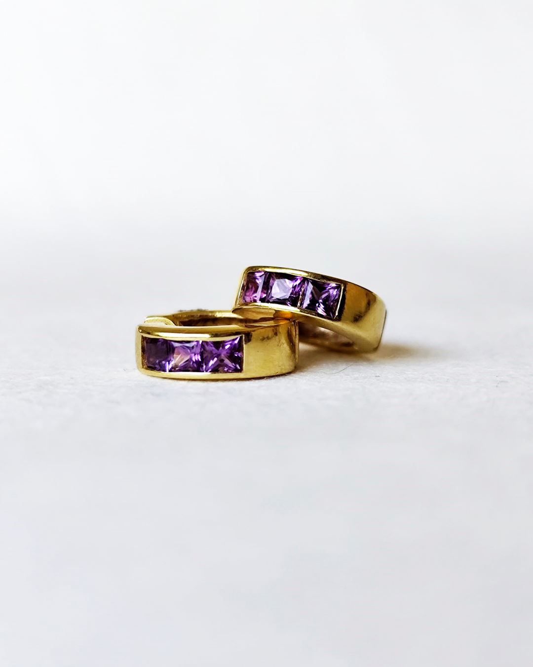 Caravanas aros macizos en oro 18k con amatistas legítimas.