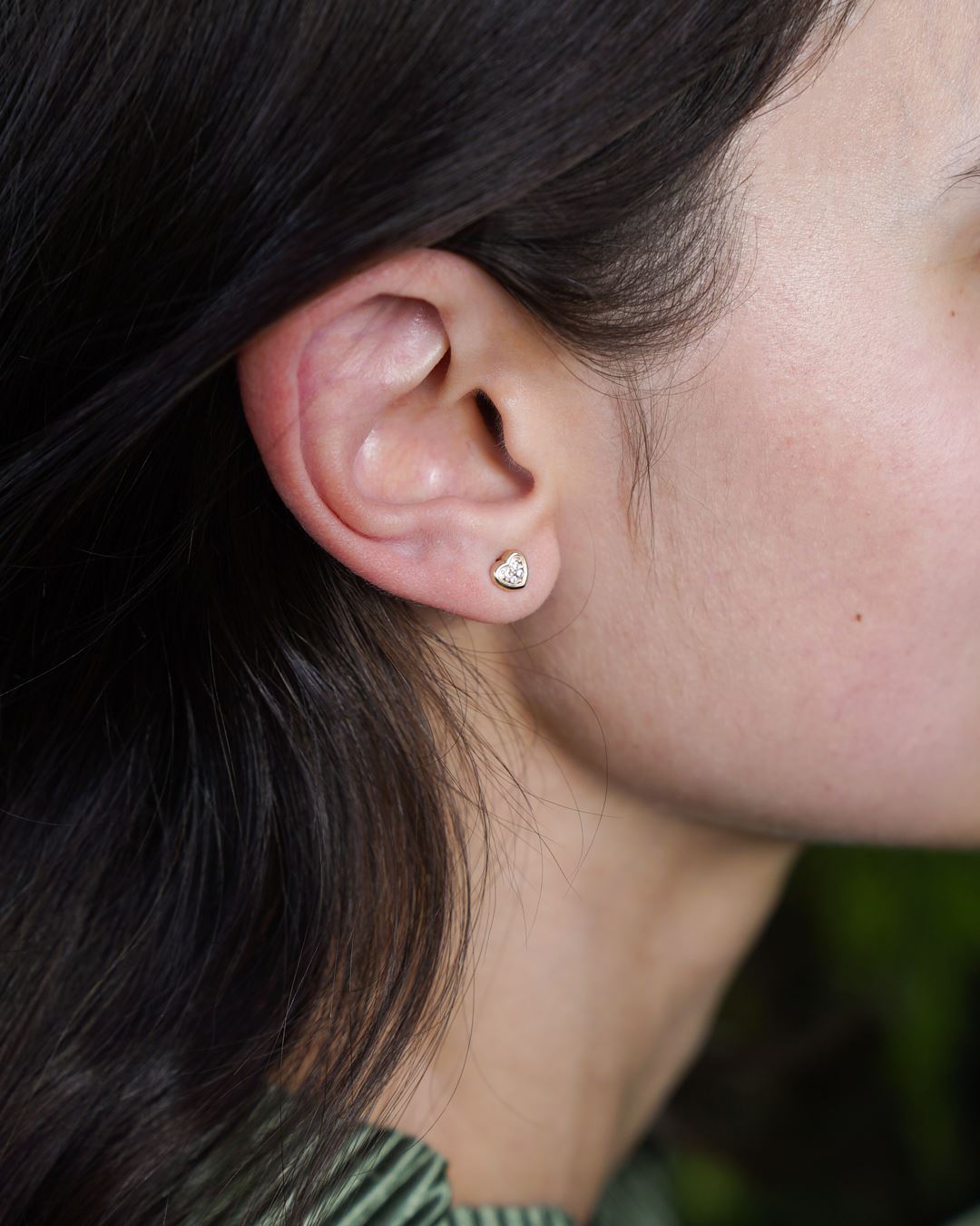 Caravanas en Oro Macizo 10k, cierre rosca, con forma de corazón y zirconias.