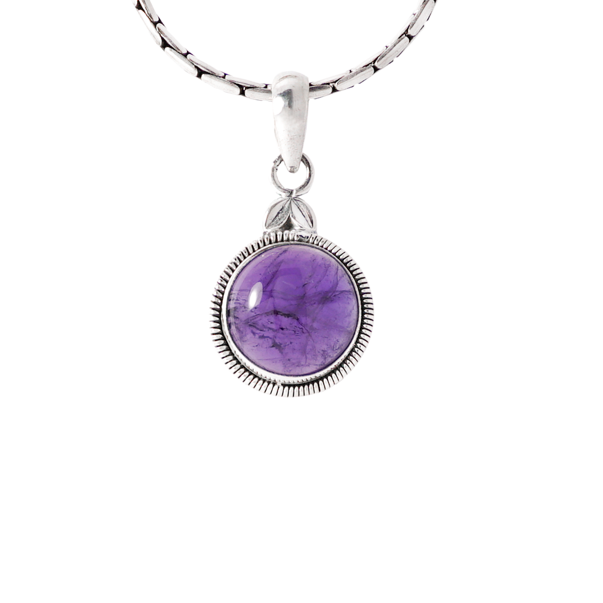 Dije Redondo Plata 925 con Amatista Legítima. Medida: 24mm x 17mm