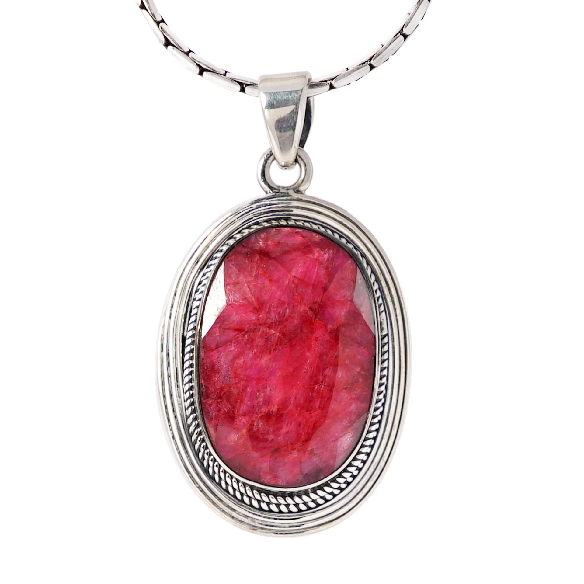 Dije con raíz de rubí legítimo en Plata 925. Medida: 36mm x 2.6mm