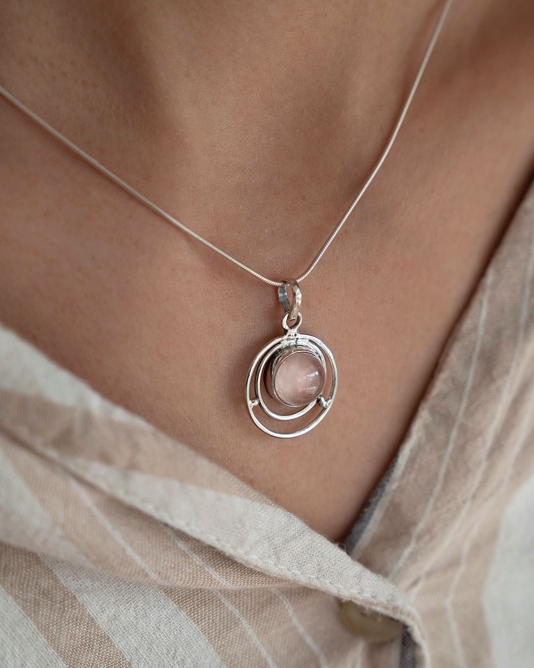 Dije en plata 925 con piedra natural cuarzo rosa.
