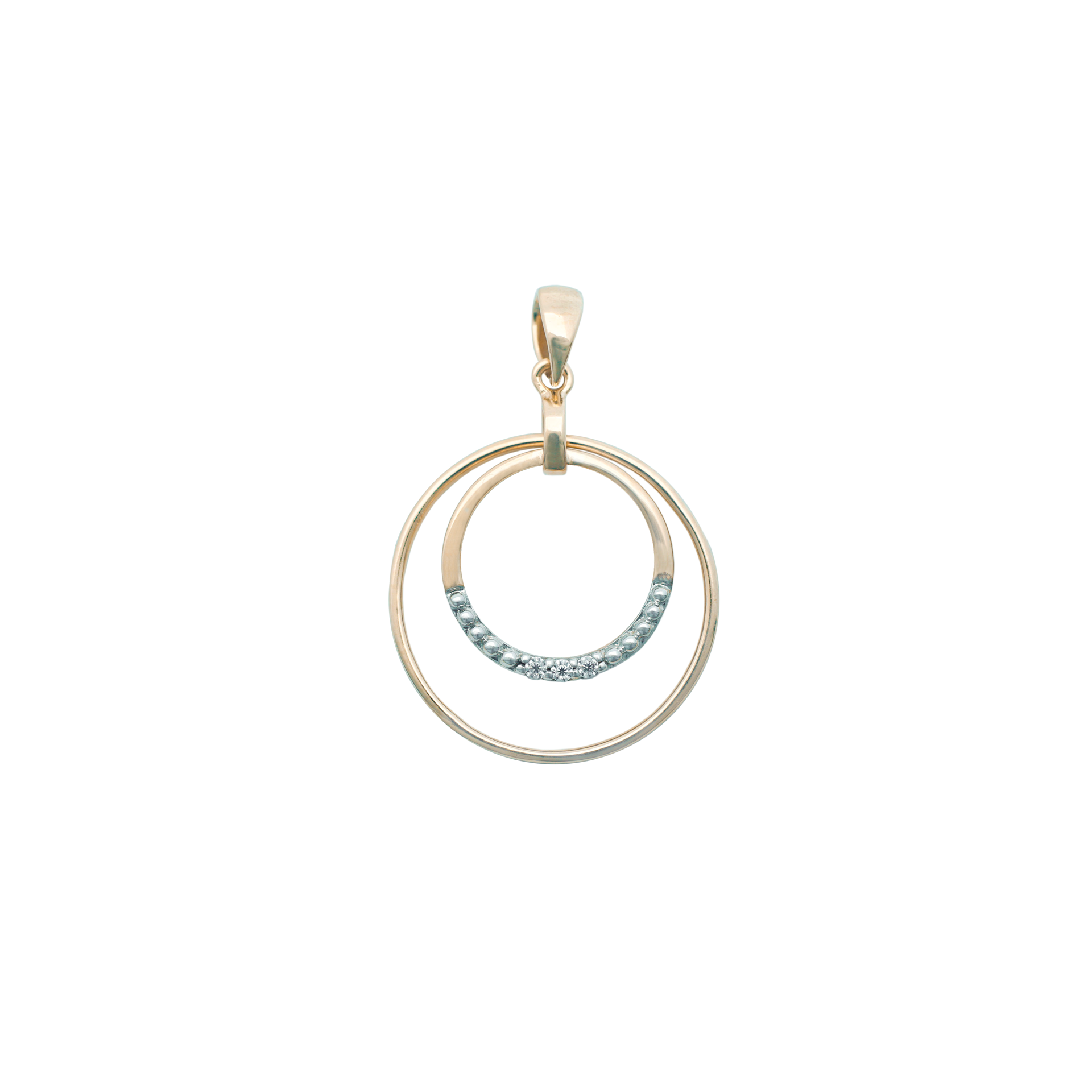 Dije en Oro 9k doble aro y Zirconias. Medida 19mm diámetro