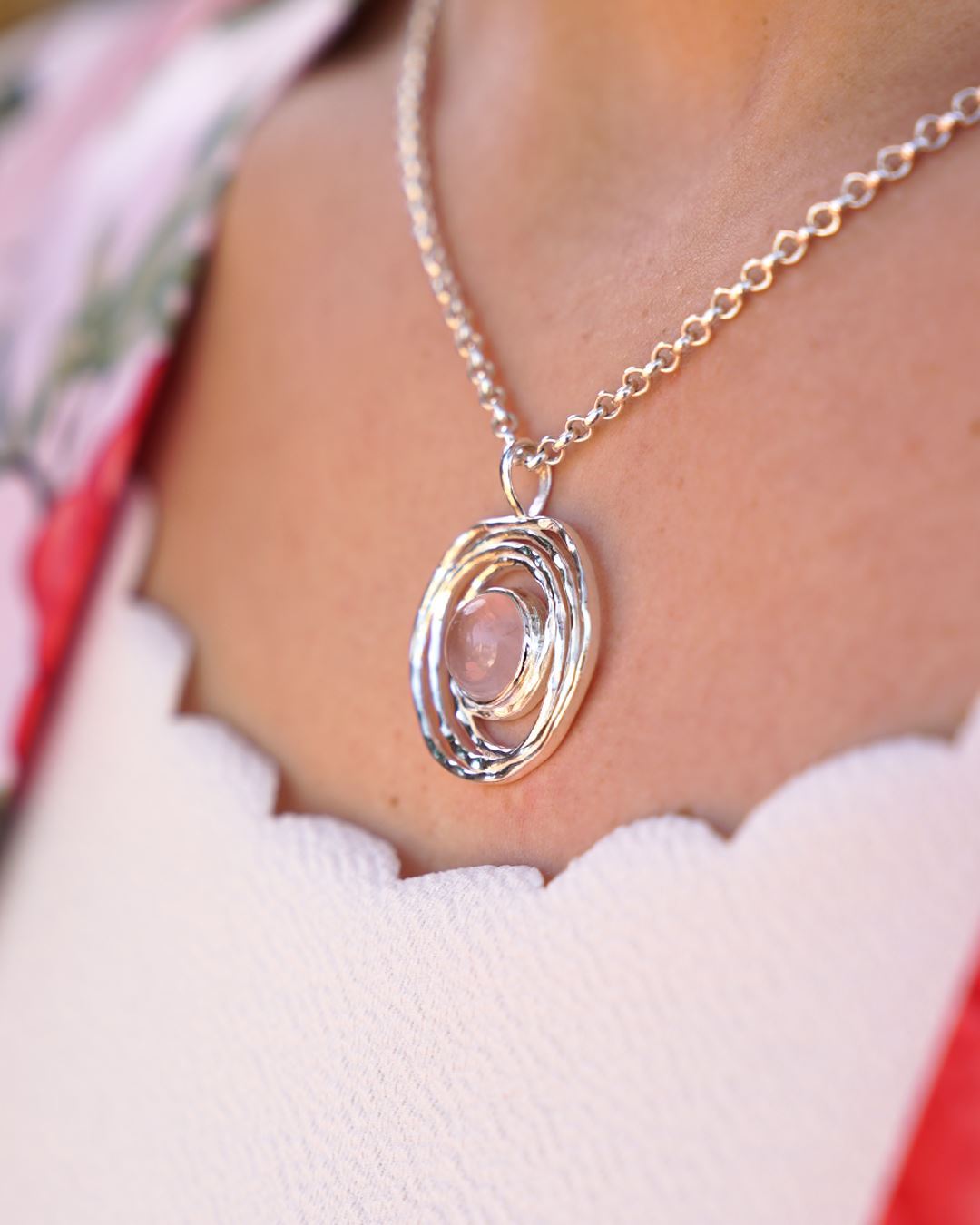 Dije en Plata 925 con Cuarzo Rosa Natural.