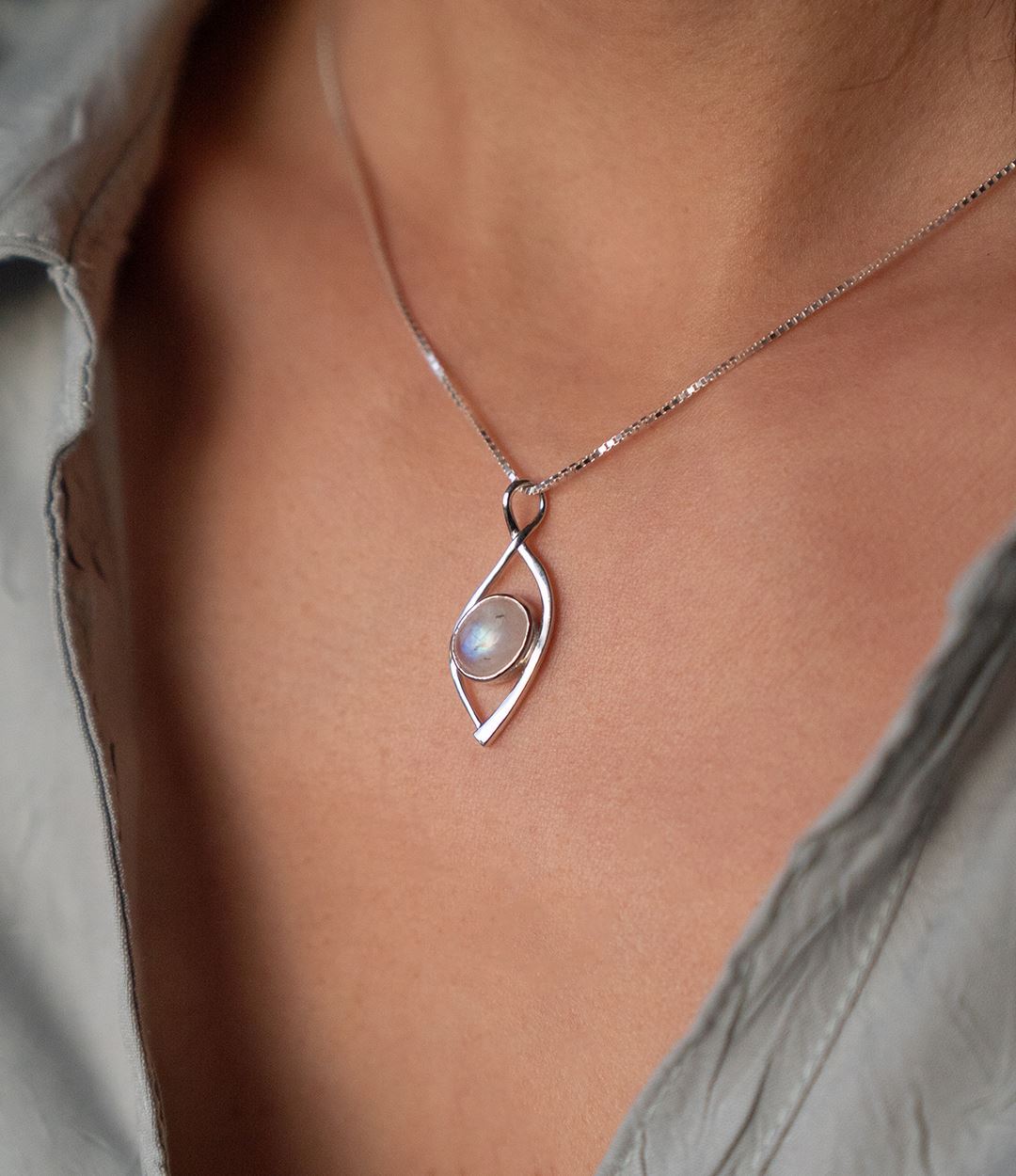 Dije en Plata 925 con piedra de la luna en el centro.
