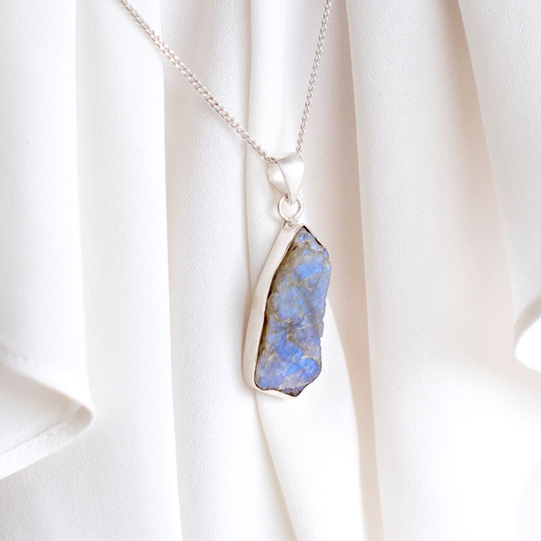 Dije en Plata 925 con piedra rústica Labradorita sin tallar.