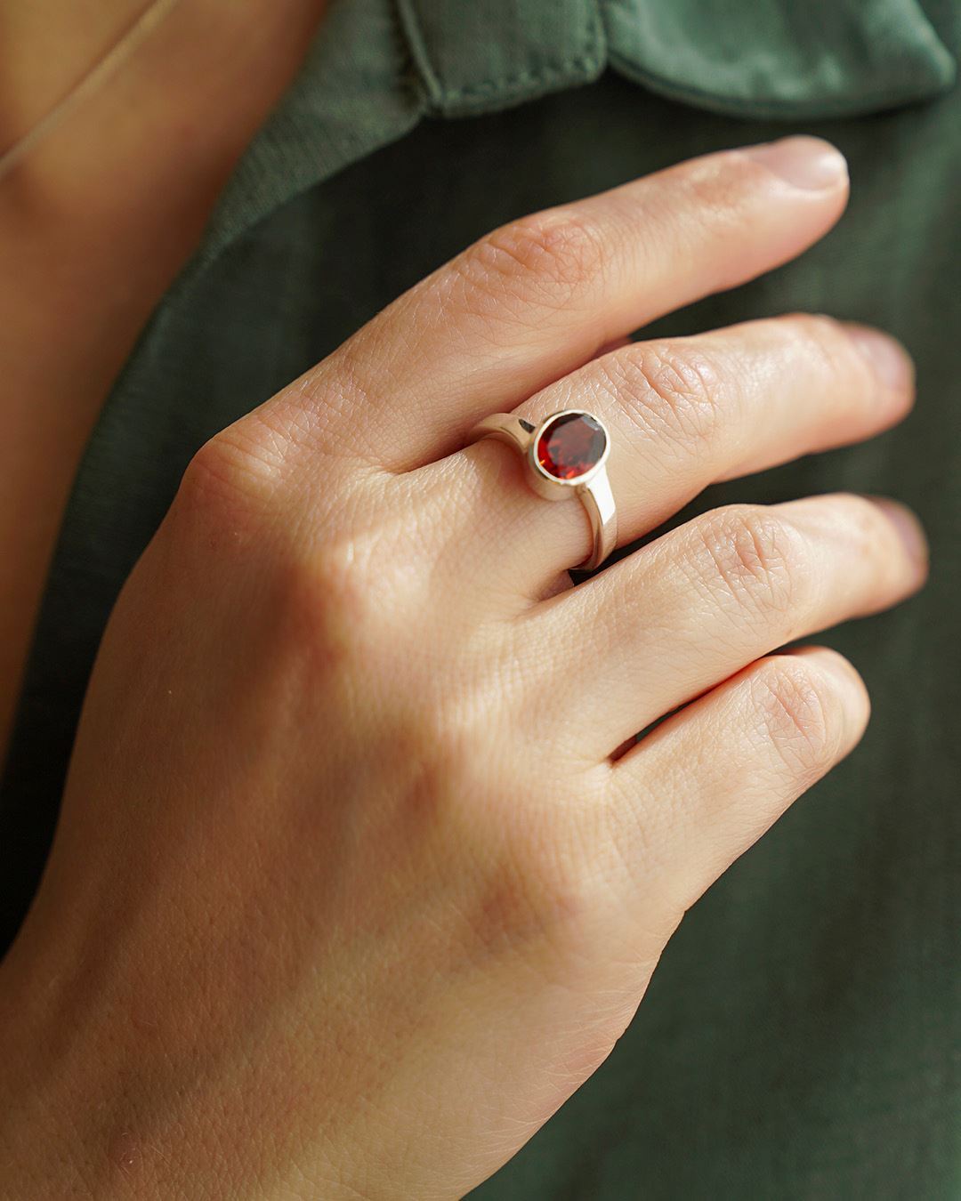 Anillo en Plata 925 con piedra granate legítima facetada.