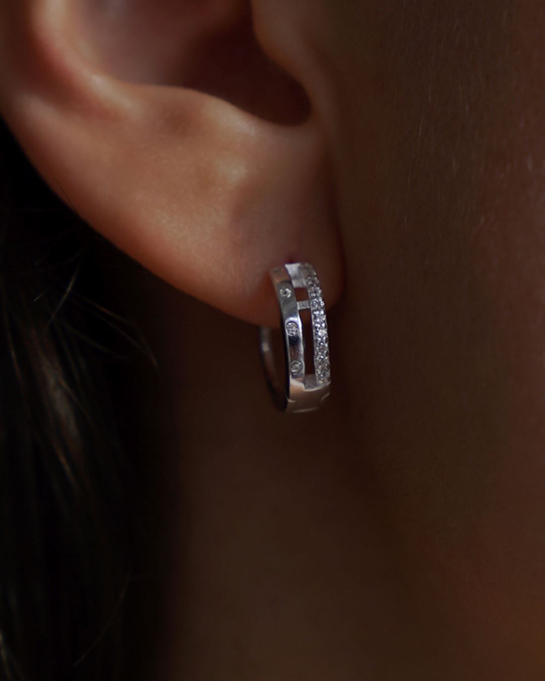 Aros en Plata 925 con zirconias, con cierre tipo bisagra