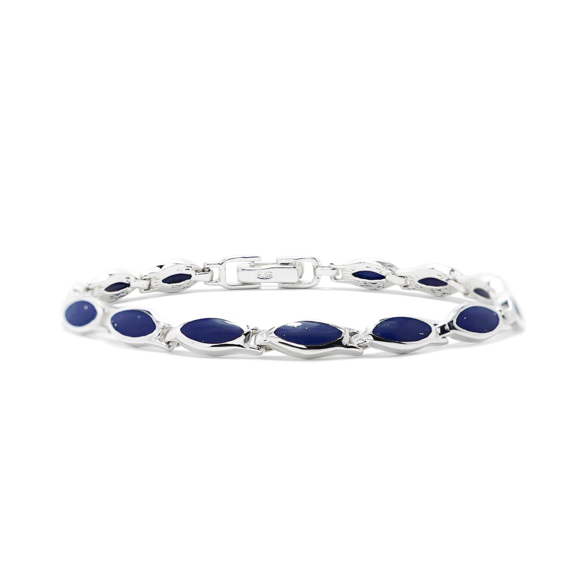 Brazalete en Plata 925 con eslabón oval azul.