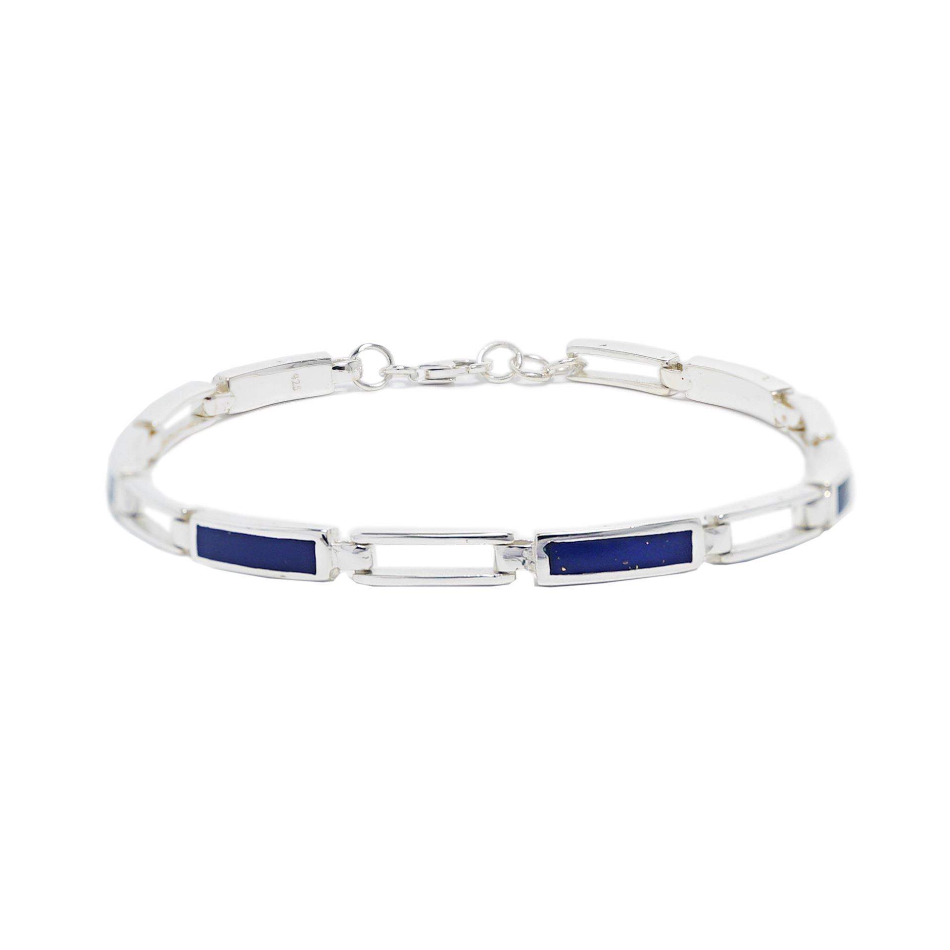 Brazalete en plata 925 alternando eslabón calado y azul