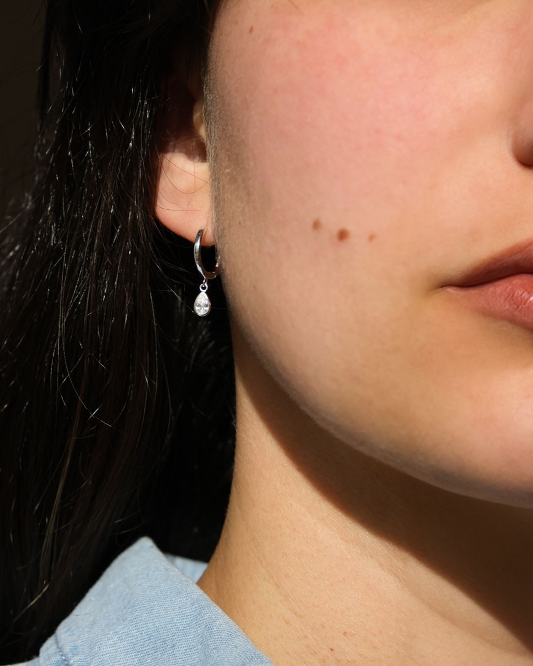 Caravanas aros en plata 925 con zirconia lágrima. Medida del aro: 12mm diámetro