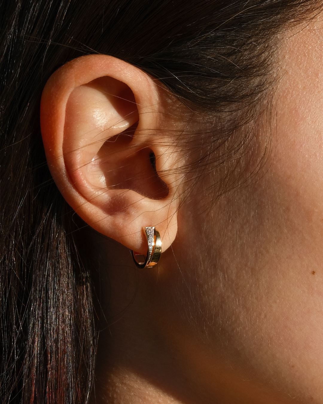 Caravanas tipo aros en Oro macizo y Zirconias