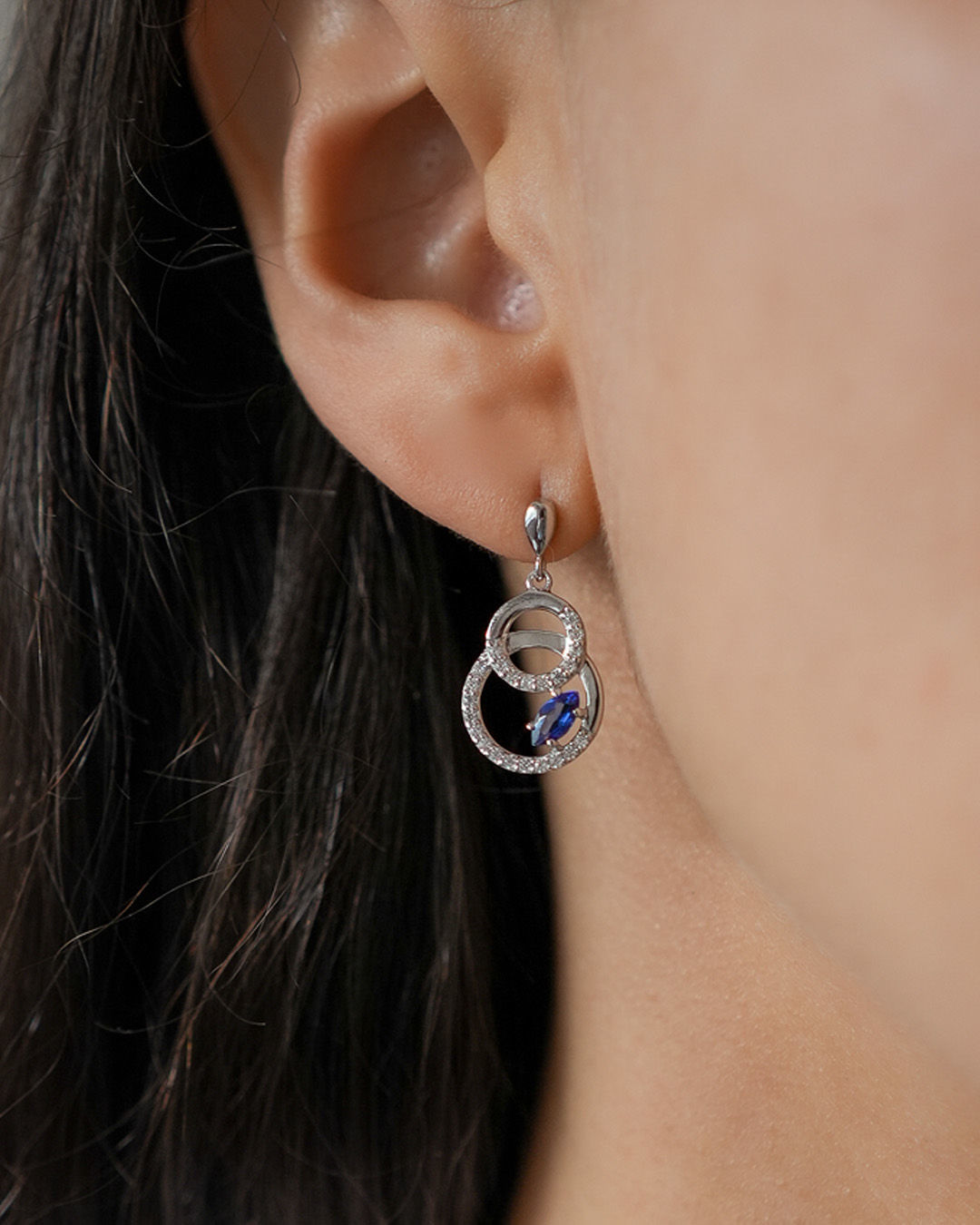 Caravanas en plata 925 con doble aro de zirconias y zafiro navette.