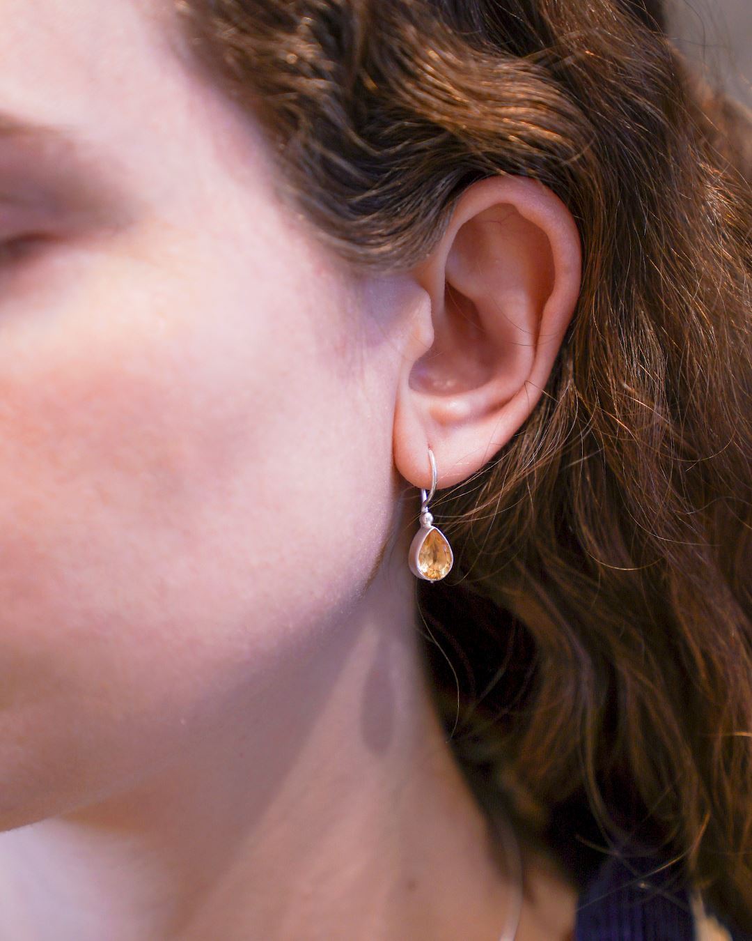 Caravanas en Plata 925 con citrino facetado legítimo y cierre gancho cerrado. El citrino es conocido por estimular la creatividad, la confianza y la voluntad de emprender nuevos proyectos. Además, se le atribuyen propiedades de purificación y limpieza energética, ayudando a liberar el estrés y las emociones negativas.