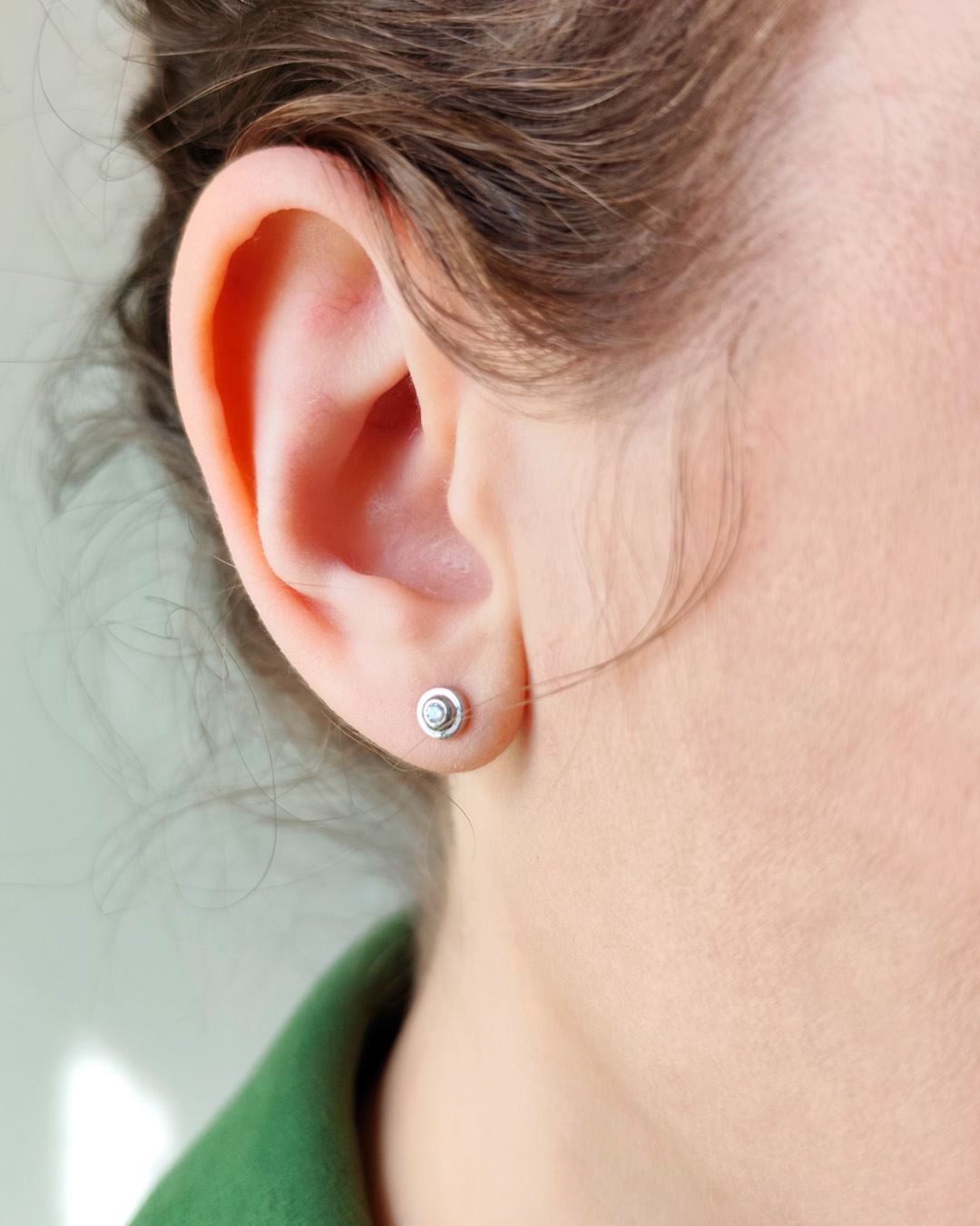 Caravanas puntito de luz con virola y zirconia.