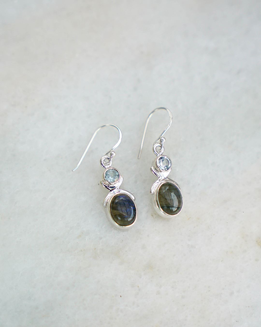 Caravanas en Plata 925 con Labradorita y topacio azul legítimo.
