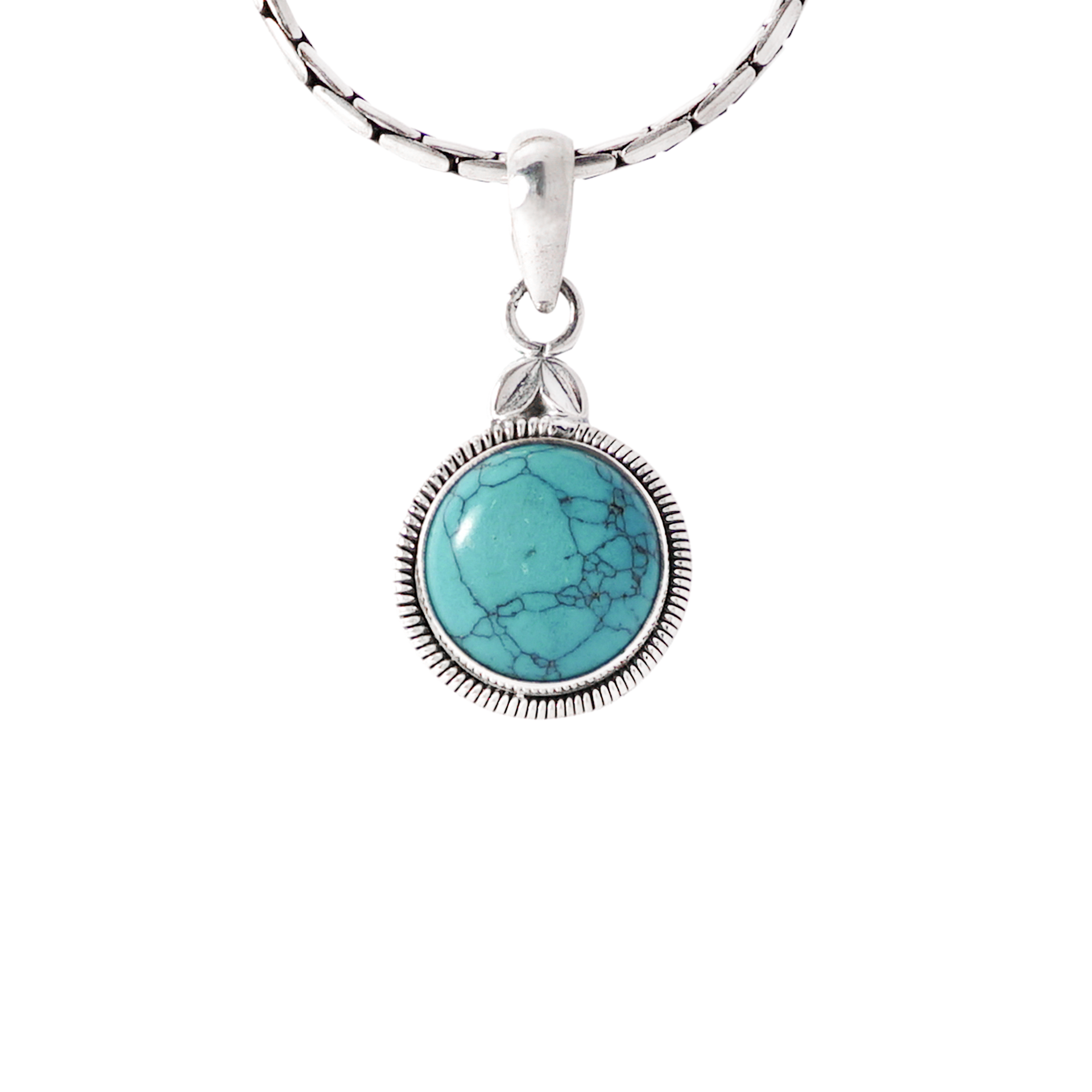 Dije Redondo Plata 925 con Turquesa. Medida: 24mm x 17mm