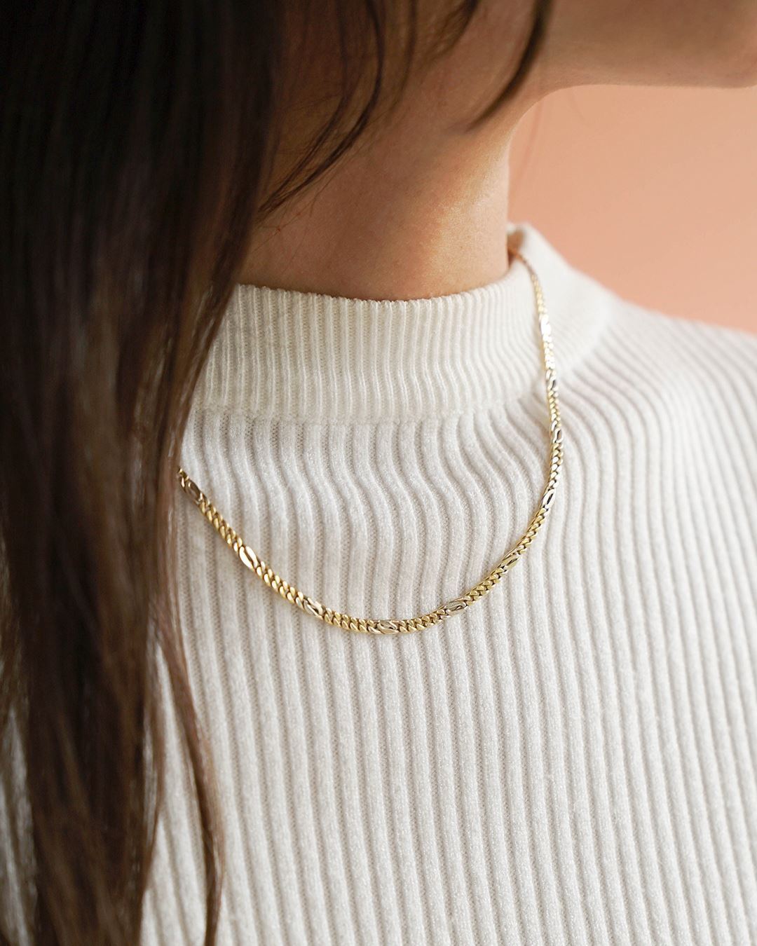 Collar macizo en Oro 18k amarillo y blanco combinado. Diseño moderno y versátil.
