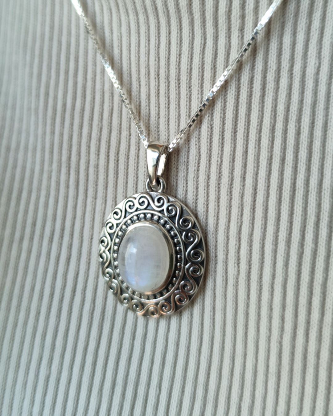 Dije labrado en plata 925 con piedra de la luna natural.