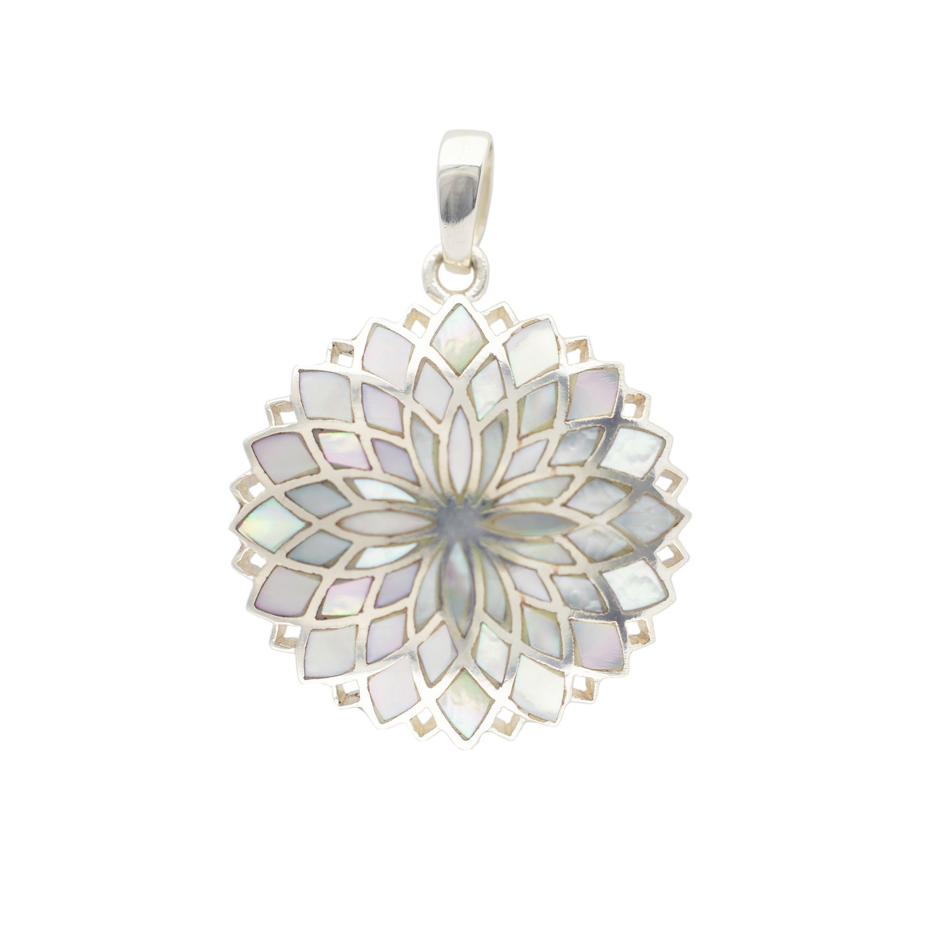 Dije Plata 925 Mandala con Nácar. Medida: 27 mm diámetro