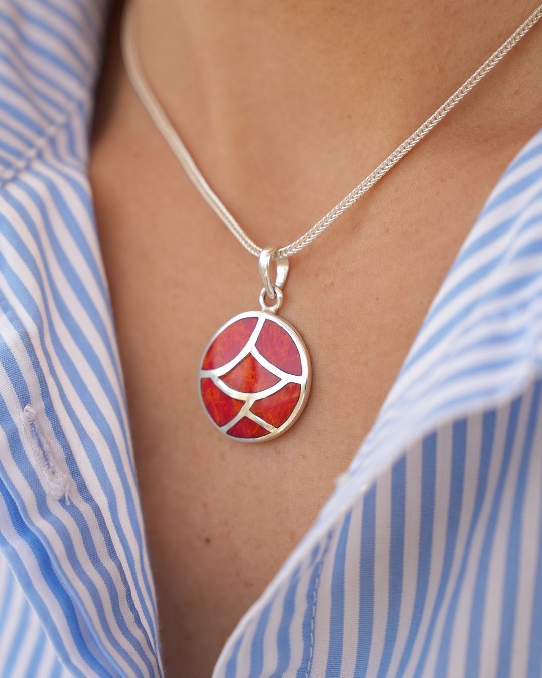 Dije en plata 925 con nácar rojo sintético.