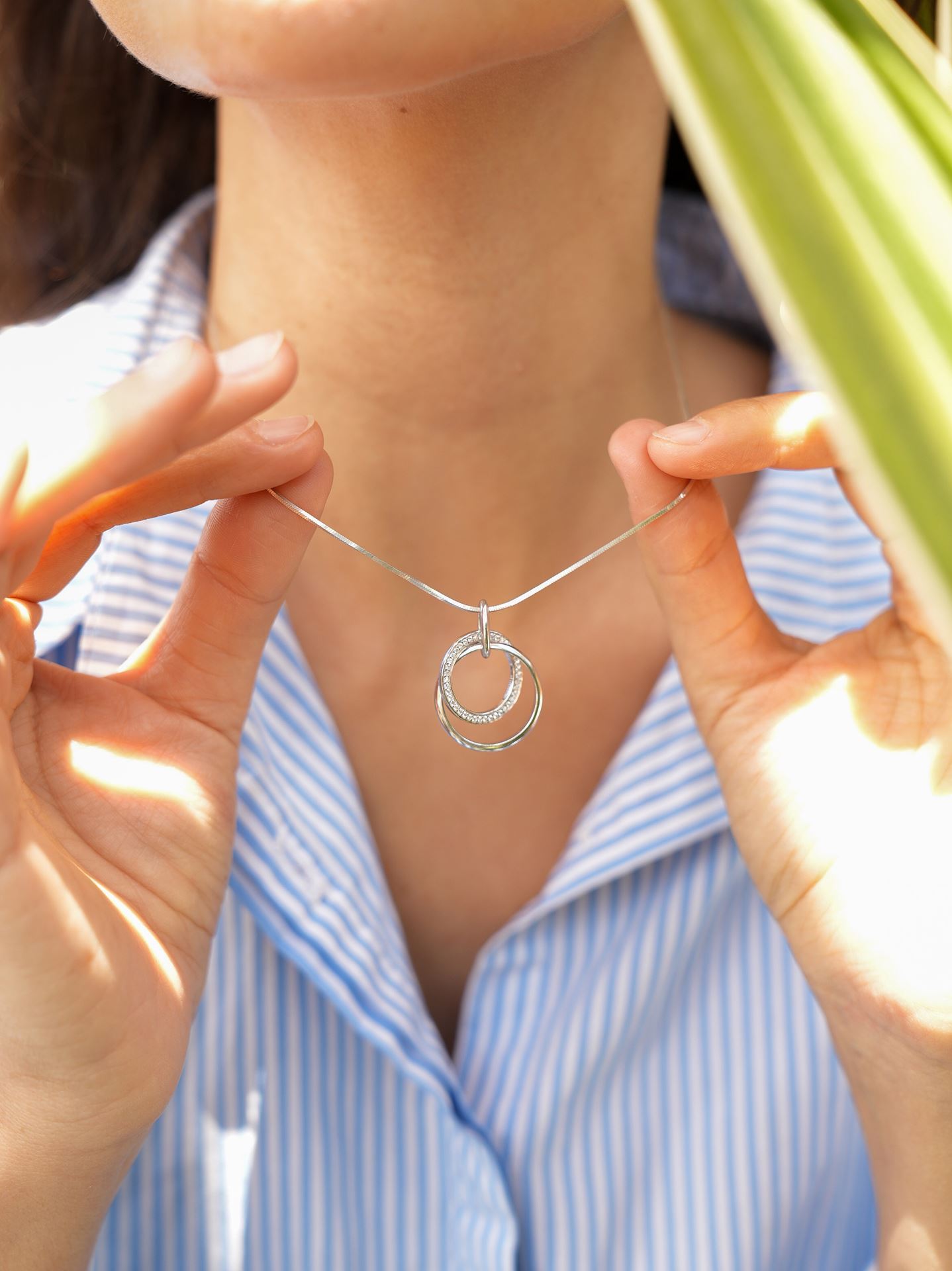 Dije en plata 925 con dos aros, uno liso y uno con zirconias.