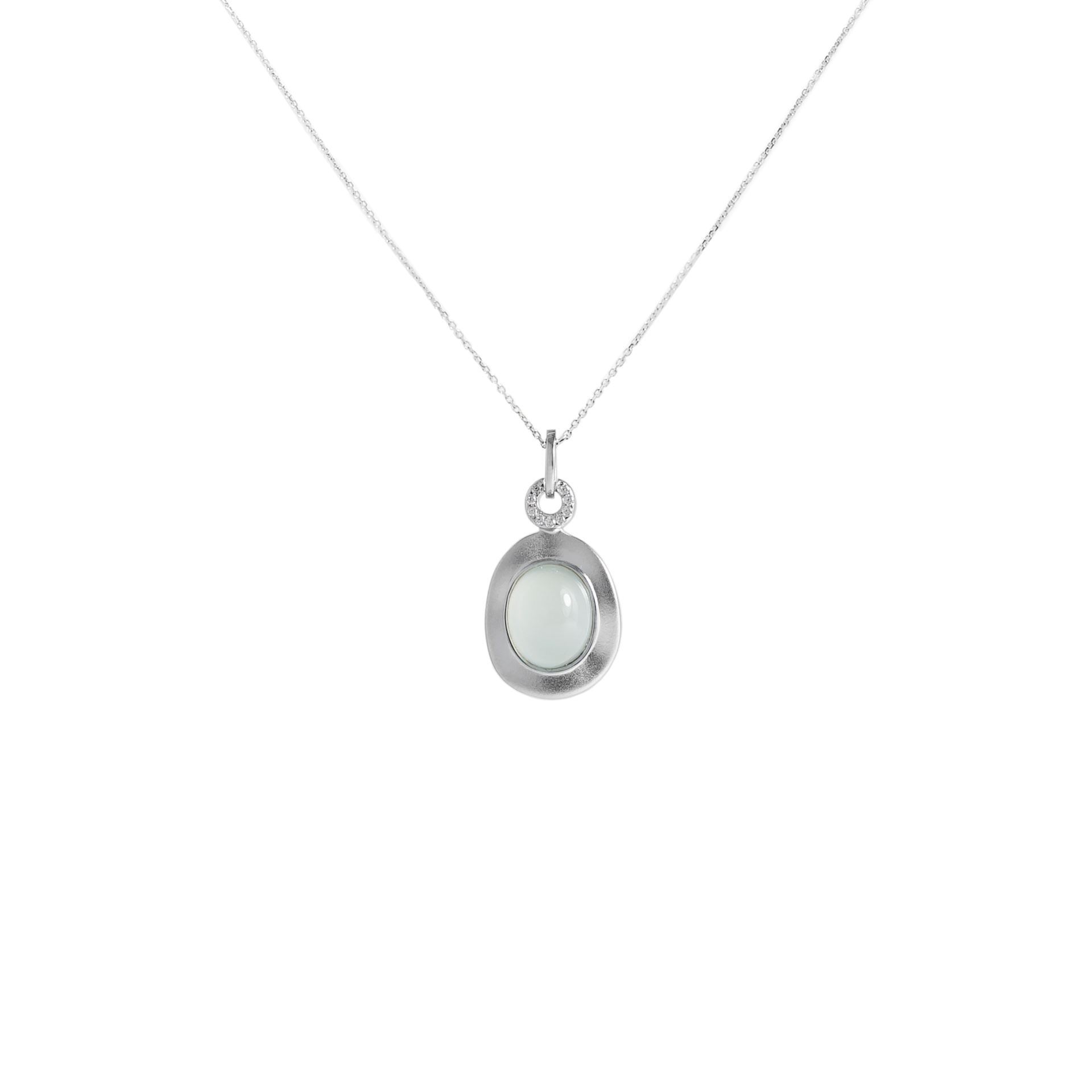 Dije en Plata 925 oval con piedra de la luna zircónias borde arenado