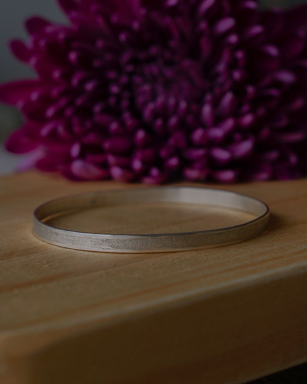 Brazalete en plata 925 tipo esclava chata, satinada. Medidas: 65mm diámetro 5mm ancho. Se puede confeccionar a medida.