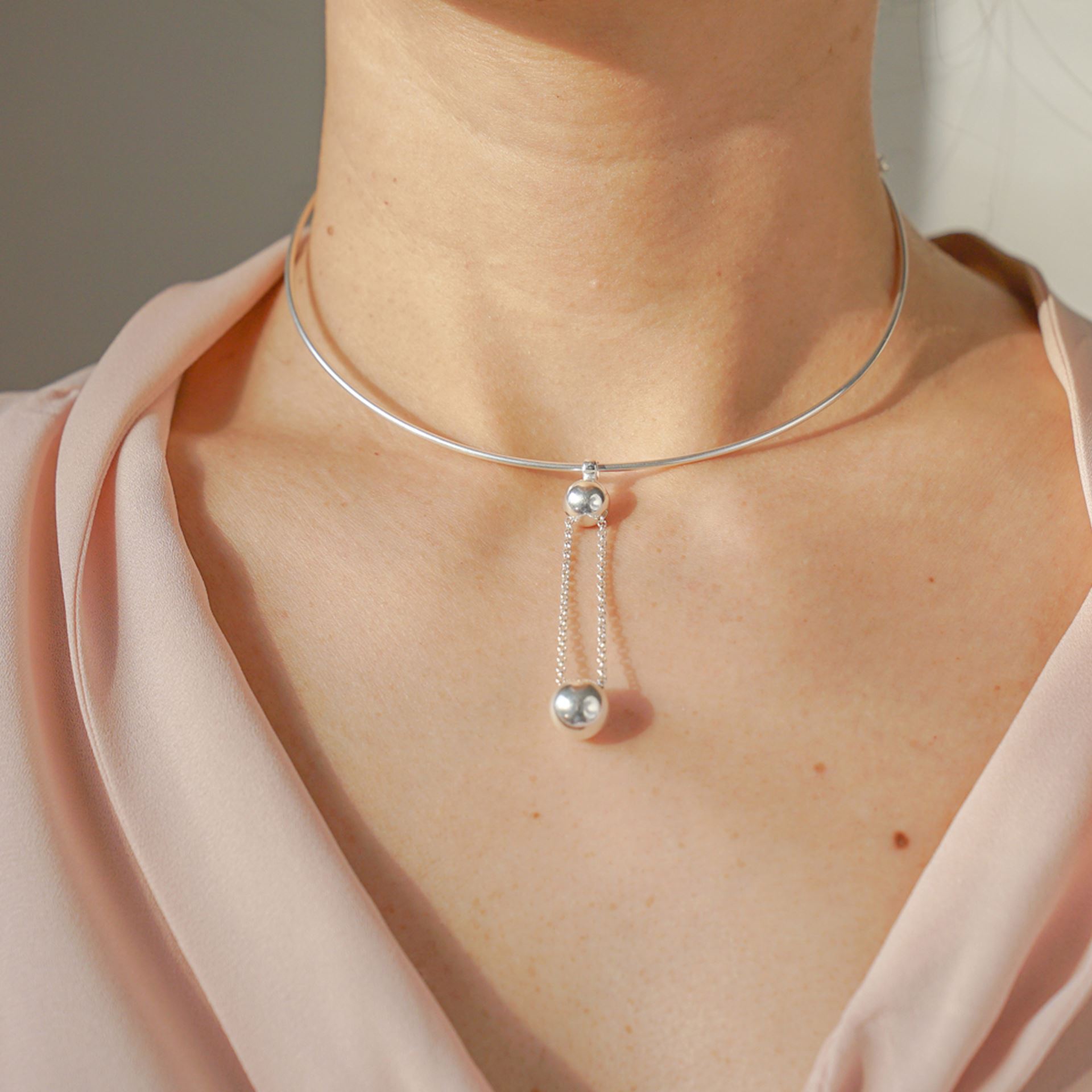 Gargantilla en plata 925 con esferas, semi-rígida, ajustable.